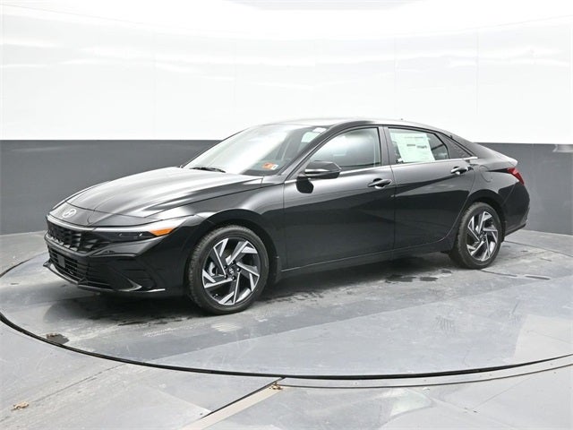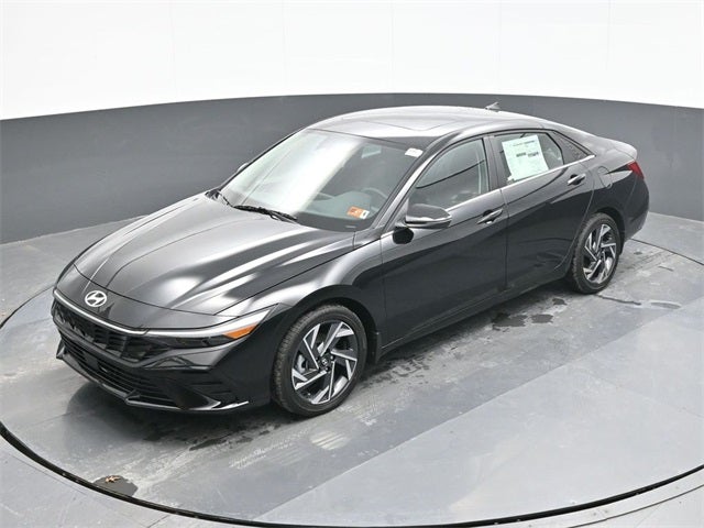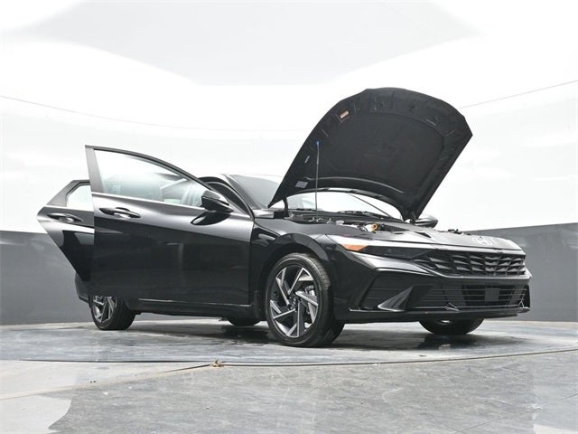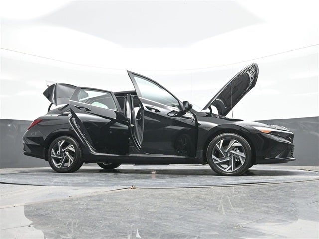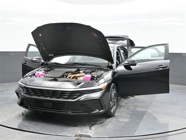 Abyss Black 2025 Hyundai Elantra Hybrid Limited FWD 6-Speed Dual Clutch I4 I4. Option Group 01, I4, 17 x 7.0J Alloy Wheels, 4-Wheel Disc Brakes, 8 Speakers, ABS brakes, Air Conditioning, Alloy wheels, AM/FM radio: SiriusXM, Apple CarPlay & Android Auto, Auto High-beam Headlights, Auto-dimming Rear-View mirror, Automatic temperature control, Brake assist, Bumpers: body-color, Cargo Net, Carpeted Floor Mats, Delay-off headlights, Driver door bin, Driver vanity mirror, Dual front impact airbags, Dual front side impact airbags, Electronic Stability Control, Emergency communication system: Bluelink+, Exterior Parking Camera Rear, First Aid Kit, Front anti-roll bar, Front Bucket Seats, Front Center Armrest, Front dual zone A/C, Front reading lights, Front wheel independent suspension, Fully automatic headlights, H-Tex Leatherette Seat Trim, Heated & Ventilated Front Bucket Seats, Heated door mirrors, Heated front seats, Illuminated entry, Leather Shift Knob, Leather steering wheel, Low tire pressure warning, Memory seat, Mudguards, Navigation System, Occupant sensing airbag, Outside temperature display, Overhead airbag, Overhead console, Panic alarm, Passenger door bin, Passenger vanity mirror, Power door mirrors, Power driver seat, Power moonroof, Power steering, Power windows, Radio: AM/FM/HD/SiriusXM Display Audio, Rear seat center armrest, Rear side impact airbag, Rear window defroster, Remote keyless entry, Reversible Cargo Tray, Security system, Speed control, Speed-sensing steering, Split folding rear seat, Steering wheel mounted audio controls, Tachometer, Telescoping steering wheel, Tilt steering wheel, Traction control, Trip computer, Turn signal indicator mirrors, Variably intermittent wipers, Ventilated front seats, and Wheel Locks.