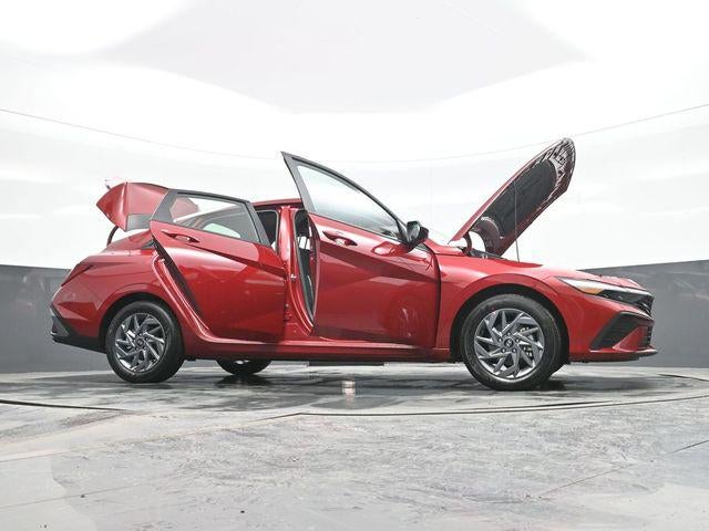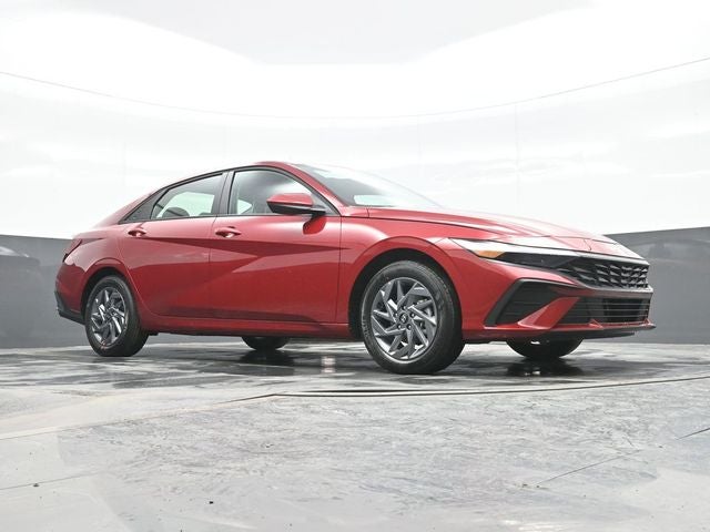 Ultimate Red Metallic 2026 Hyundai Elantra Hybrid Blue FWD 6-Speed Dual Clutch I4 I4. Cargo Package (Cargo Blocks and Cargo Tray), Option Group 01, I4, 16 x 6.5J Alloy Wheels, 4-Wheel Disc Brakes, 6 Speakers, ABS brakes, Air Conditioning, Alloy wheels, AM/FM radio, Apple CarPlay & Android Auto, Auto High-beam Headlights, Automatic temperature control, Brake assist, Bumpers: body-color, Cargo Net, Cargo Side Bins, Carpeted Floor Mats, Delay-off headlights, Driver door bin, Driver vanity mirror, Dual front impact airbags, Dual front side impact airbags, Electronic Stability Control, Exterior Parking Camera Rear, First Aid Kit, Front anti-roll bar, Front Bucket Seats, Front Center Armrest, Front dual zone A/C, Front reading lights, Front wheel independent suspension, Fully automatic headlights, Heated door mirrors, Illuminated entry, Low tire pressure warning, Occupant sensing airbag, Outside temperature display, Overhead airbag, Overhead console, Panic alarm, Passenger door bin, Passenger vanity mirror, Power door mirrors, Power steering, Power windows, Premium Cloth Seat Trim, Radio: AM/FM/HD Display Audio, Rear side impact airbag, Rear window defroster, Remote keyless entry, Roadside Assistance Kit, Security system, Speed control, Speed-sensing steering, Steering wheel mounted audio controls, Tachometer, Telescoping steering wheel, Tilt steering wheel, Traction control, Trip computer, and Variably intermittent wipers.