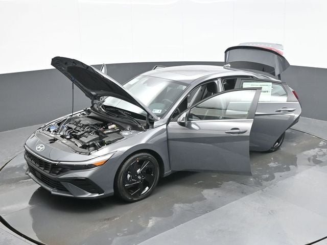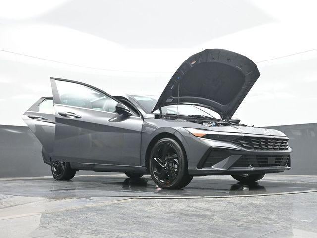 Ecotronic Gray 2026 Hyundai Elantra SEL Sport FWD CVT I4 4-Wheel Disc Brakes, 6 Speakers, ABS brakes, Air Conditioning, Alloy wheels, AM/FM radio, Apple CarPlay & Android Auto, Auto High-beam Headlights, Automatic temperature control, Brake assist, Bumpers: body-color, Cargo Net, Cargo Tray, Delay-off headlights, Driver door bin, Driver vanity mirror, Dual front impact airbags, Dual front side impact airbags, Electronic Stability Control, Exterior Parking Camera Rear, Front anti-roll bar, Front Bucket Seats, Front Center Armrest, Front dual zone A/C, Front reading lights, Front wheel independent suspension, Fully automatic headlights, Heated door mirrors, Heated Front Bucket Seats, Heated front seats, Illuminated entry, Low tire pressure warning, Occupant sensing airbag, Outside temperature display, Overhead airbag, Overhead console, Panic alarm, Passenger door bin, Passenger vanity mirror, Power door mirrors, Power moonroof, Power steering, Power windows, Premium Cloth Seat Trim, Radio: AM/FM/HD Display Audio, Rear seat center armrest, Rear side impact airbag, Rear window defroster, Remote keyless entry, Security system, Speed control, Speed-sensing steering, Split folding rear seat, Spoiler, Steering wheel mounted audio controls, Tachometer, Telescoping steering wheel, Tilt steering wheel, Traction control, Trip computer, Variably intermittent wipers, and Wheels: 17 x 7.0J Alloy Gloss Black w/Dark Finish.