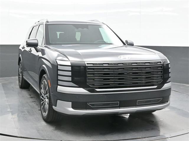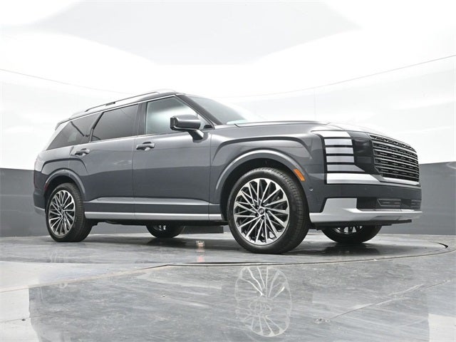 Electronic Gray 2026 Hyundai Palisade Calligraphy AWD 8-Speed Automatic V6 ABS brakes, Active Cruise Control, Alloy wheels, Compass, Electronic Stability Control, Front dual zone A/C, Heated door mirrors, Heated front seats, Heated rear seats, Illuminated entry, Low tire pressure warning, Navigation System, Power Liftgate, Power moonroof, Remote keyless entry, Traction control. ABS brakes, Active Cruise Control, Alloy wheels, Compass, Electronic Stability Control, Front dual zone A/C, Heated door mirrors, Heated front seats, Heated rear seats, Illuminated entry, Low tire pressure warning, Navigation System, Power Liftgate, Power moonroof, Remote keyless entry, Traction control, 14 Speakers, 3rd row seats: split-bench, 4-Wheel Disc Brakes, Air Conditioning, AM/FM radio: SiriusXM, Apple CarPlay & Android Auto, Audio memory, Auto High-beam Headlights, Auto-dimming door mirrors, Auto-dimming Rear-View mirror, Auto-leveling suspension, Automatic temperature control, Brake assist, Bumpers: body-color, Delay-off headlights, Driver door bin, Driver vanity mirror, Dual front impact airbags, Dual front side impact airbags, Exterior Parking Camera Rear, Four wheel independent suspension, Front anti-roll bar, Front Bucket Seats, Front Center Armrest, Front reading lights, Fully automatic headlights, Garage door transmitter: HomeLink, Genuine wood console insert, Genuine wood dashboard insert, Heads-Up Display, Heated steering wheel, HVAC memory, Knee airbag, Leather steering wheel, Memory seat, Occupant sensing airbag, Outside temperature display, Overhead airbag, Overhead console, Panic alarm, Passenger door bin, Passenger vanity mirror, Power door mirrors, Power driver seat, Power passenger seat, Power steering, Power windows, Premium Nappa Leather Seat Trim, Radio data system, Radio: Infotainment Navigation System, Rain sensing wipers, Rear air conditioning, Rear anti-roll bar, Rear audio controls, Rear reading lights, Rear side impact airbag, Rear window defroster, Rear window wiper, Reclining 3rd row seat, Security system, Speed control, Split folding rear seat, Spoiler, Steering wheel mounted audio controls, Tachometer, Telescoping steering wheel, Tilt steering wheel, Trip computer, Turn signal indicator mirrors, Variably intermittent wipers, Ventilated front seats, Ventilated rear seats, and Wheels: 21 x 8.5J Alloy.