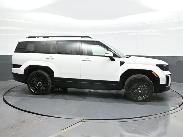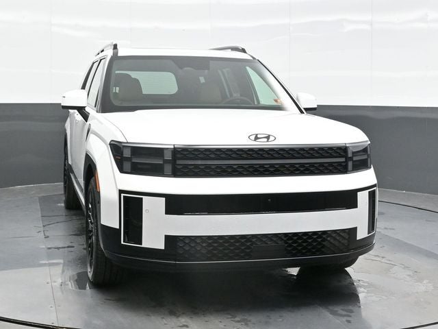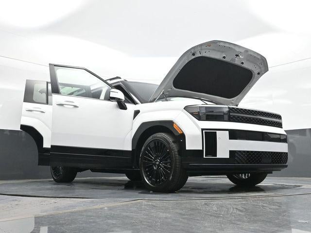 Serenity White 2026 Hyundai Santa Fe Hybrid Calligraphy AWD 6-Speed Automatic with Shiftronic I4 I4. Option Group 01, I4, 12 Speakers, 3rd row seats: bench, 4-Wheel Disc Brakes, ABS brakes, Air Conditioning, Alloy wheels, AM/FM radio: SiriusXM, Apple CarPlay & Android Auto, Auto High-beam Headlights, Auto-dimming Rear-View mirror, Automatic temperature control, Brake assist, Bumpers: body-color, Cargo Blocks, Cargo Cover/Screen, Cargo Net, Cargo Tray, Carpeted Floor Mats, Delay-off headlights, Driver door bin, Driver vanity mirror, Dual front impact airbags, Dual front side impact airbags, Electronic Stability Control, Emergency communication system, Exterior Parking Camera Rear, First Aid Kit, Four wheel independent suspension, Front anti-roll bar, Front Bucket Seats, Front Center Armrest, Front dual zone A/C, Front reading lights, Fully automatic headlights, Garage door transmitter: HomeLink, Heads-Up Display, Heated door mirrors, Heated front seats, Heated rear seats, Heated steering wheel, Illuminated entry, Knee airbag, Leather steering wheel, Low tire pressure warning, Memory seat, Mudguards, Navigation System, Occupant sensing airbag, Outside temperature display, Overhead airbag, Overhead console, Panic alarm, Passenger door bin, Passenger vanity mirror, Power door mirrors, Power driver seat, Power Liftgate, Power moonroof, Power passenger seat, Power steering, Power windows, Quilted Premium Nappa Leather Seat Trim, Radio: AM/FM/HD Bose Premium Audio System, Rain sensing wipers, Rear anti-roll bar, Rear side impact airbag, Rear window defroster, Rear window wiper, Remote keyless entry, Security system, Speed control, Speed-sensing steering, Split folding rear seat, Spoiler, Steering wheel mounted audio controls, Tachometer, Telescoping steering wheel, Tilt steering wheel, Traction control, Trip computer, Turn signal indicator mirrors, Variably intermittent wipers, Ventilated front seats, and Wheels: 20 x 8.5J Unique Dark Finish Alloy.