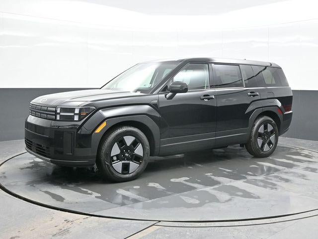 Phantom Black 2026 Hyundai Santa Fe Hybrid SE AWD 6-Speed Automatic with Shiftronic I4 I4. Option Group 01, I4, 18 x 7.5J Alloy Wheels, 3rd row seats: bench, 4-Wheel Disc Brakes, 6 Speakers, ABS brakes, Air Conditioning, Alloy wheels, AM/FM radio: SiriusXM, Apple CarPlay & Android Auto, Auto High-beam Headlights, Automatic temperature control, Brake assist, Bumpers: body-color, Cargo Net, Carpeted Floor Mats, Delay-off headlights, Driver door bin, Driver vanity mirror, Dual front impact airbags, Dual front side impact airbags, Electronic Stability Control, Emergency communication system, Exterior Parking Camera Rear, Four wheel independent suspension, Front anti-roll bar, Front Bucket Seats, Front Center Armrest, Front dual zone A/C, Front reading lights, Fully automatic headlights, Heated door mirrors, Illuminated entry, Knee airbag, Leather steering wheel, Low tire pressure warning, Occupant sensing airbag, Outside temperature display, Overhead airbag, Overhead console, Panic alarm, Passenger door bin, Passenger vanity mirror, Power door mirrors, Power Liftgate, Power steering, Power windows, Radio: AM/FM/HD Display Audio, Rear anti-roll bar, Rear seat center armrest, Rear side impact airbag, Rear window defroster, Rear window wiper, Remote keyless entry, Security system, Speed control, Speed-sensing steering, Split folding rear seat, Spoiler, Steering wheel mounted audio controls, Tachometer, Telescoping steering wheel, Tilt steering wheel, Traction control, Trip computer, Variably intermittent wipers, and YES Essentials Stain-Resistant Cloth Seat Trim.