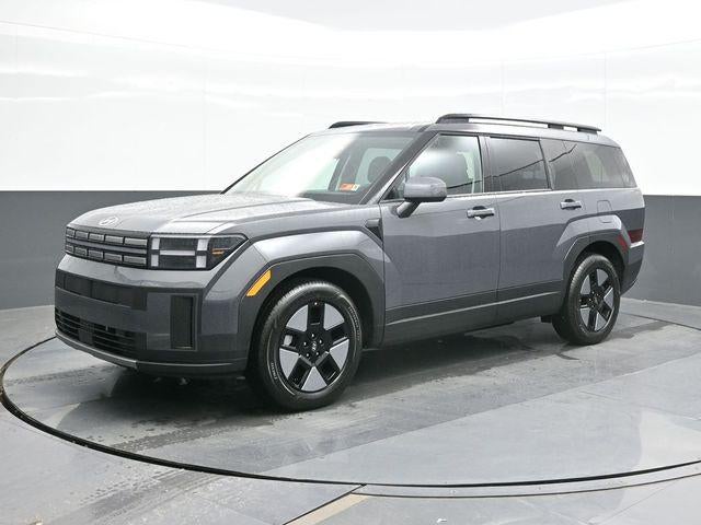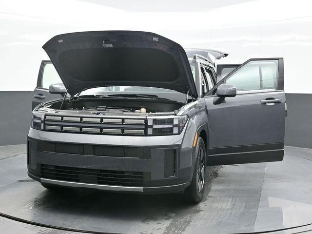 Ecotronic Gray 2026 Hyundai Santa Fe Hybrid SEL AWD 6-Speed Automatic with Shiftronic I4 I4. Option Group 01, I4, 18 x 7.5J Alloy Wheels, 3rd row seats: bench, 4-Wheel Disc Brakes, 6 Speakers, ABS brakes, Air Conditioning, Alloy wheels, AM/FM radio: SiriusXM, Apple CarPlay & Android Auto, Auto High-beam Headlights, Automatic temperature control, Brake assist, Bumpers: body-color, Cargo Cover/Screen, Cargo Net, Carpeted Floor Mats, Delay-off headlights, Driver door bin, Driver vanity mirror, Dual front impact airbags, Dual front side impact airbags, Electronic Stability Control, Emergency communication system, Exterior Parking Camera Rear, First Aid Kit, Four wheel independent suspension, Front anti-roll bar, Front Bucket Seats, Front Center Armrest, Front dual zone A/C, Front reading lights, Fully automatic headlights, H-Tex Leatherette Seat Trim, Heated door mirrors, Heated Front Bucket Seats, Heated front seats, Illuminated entry, Knee airbag, Leather steering wheel, Low tire pressure warning, Occupant sensing airbag, Outside temperature display, Overhead airbag, Overhead console, Panic alarm, Passenger door bin, Passenger vanity mirror, Power door mirrors, Power driver seat, Power Liftgate, Power steering, Power windows, Radio: AM/FM/HD Display Audio, Rear anti-roll bar, Rear seat center armrest, Rear side impact airbag, Rear window defroster, Rear window wiper, Remote keyless entry, Security system, Speed control, Speed-sensing steering, Split folding rear seat, Spoiler, Steering wheel mounted audio controls, Tachometer, Telescoping steering wheel, Tilt steering wheel, Traction control, Trip computer, Turn signal indicator mirrors, and Variably intermittent wipers.