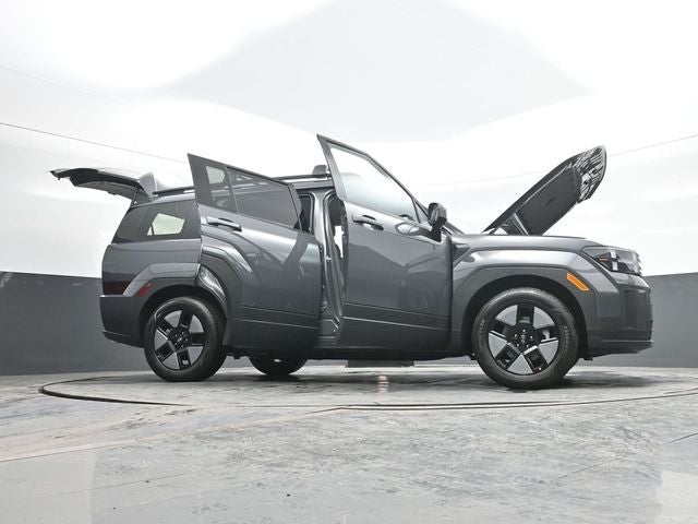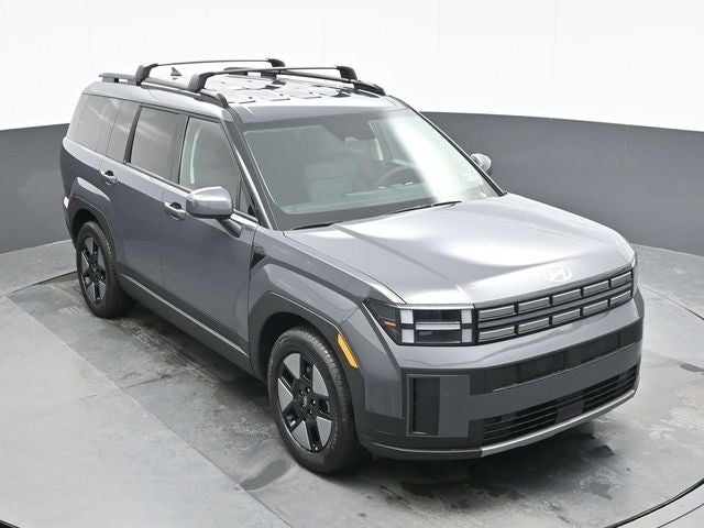 Ecotronic Gray 2026 Hyundai Santa Fe Hybrid SEL AWD 6-Speed Automatic with Shiftronic I4 I4. Option Group 01, I4, 18 x 7.5J Alloy Wheels, 3rd row seats: bench, 4-Wheel Disc Brakes, 6 Speakers, ABS brakes, Air Conditioning, Alloy wheels, AM/FM radio: SiriusXM, Apple CarPlay & Android Auto, Auto High-beam Headlights, Automatic temperature control, Brake assist, Bumpers: body-color, Cargo Net, Cargo Tray, Carpeted Floor Mats, Delay-off headlights, Driver door bin, Driver vanity mirror, Dual front impact airbags, Dual front side impact airbags, Electronic Stability Control, Emergency communication system, Exterior Parking Camera Rear, First Aid Kit, Four wheel independent suspension, Front anti-roll bar, Front Bucket Seats, Front Center Armrest, Front dual zone A/C, Front reading lights, Fully automatic headlights, H-Tex Leatherette Seat Trim, Heated door mirrors, Heated Front Bucket Seats, Heated front seats, Illuminated entry, Knee airbag, Leather steering wheel, Low tire pressure warning, Occupant sensing airbag, Outside temperature display, Overhead airbag, Overhead console, Panic alarm, Passenger door bin, Passenger vanity mirror, Power door mirrors, Power driver seat, Power Liftgate, Power steering, Power windows, Radio: AM/FM/HD Display Audio, Rear anti-roll bar, Rear seat center armrest, Rear side impact airbag, Rear window defroster, Rear window wiper, Remote keyless entry, Roadside Assistance Kit, Roof Rack Crossbars, Security system, Speed control, Speed-sensing steering, Split folding rear seat, Spoiler, Steering wheel mounted audio controls, Tachometer, Telescoping steering wheel, Tilt steering wheel, Traction control, Trip computer, Turn signal indicator mirrors, and Variably intermittent wipers.