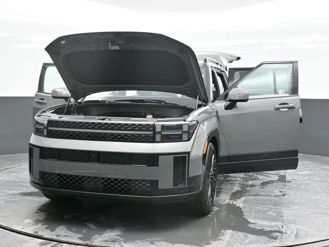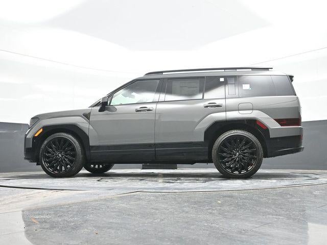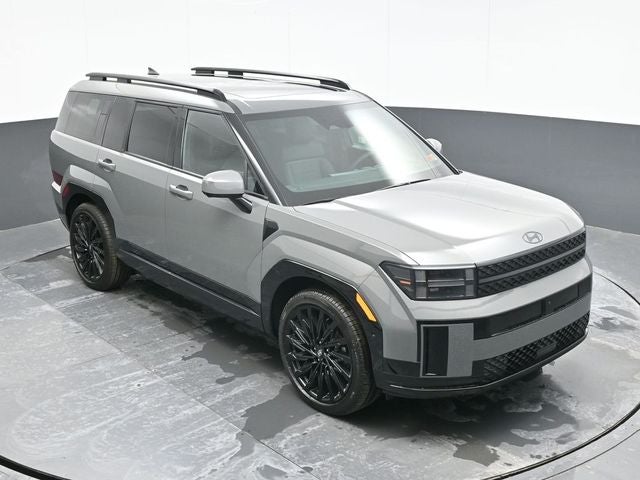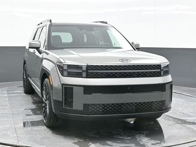 Hampton Gray 2026 Hyundai Santa Fe Calligraphy AWD 8-Speed Automatic with SHIFTRONIC 2.5L I4 AWD, Black Leather. Option Group 01, AWD, Black Leather, 12 Speakers, 3rd row seats: bench, 4-Wheel Disc Brakes, ABS brakes, Air Conditioning, All Season Fitted Liners, Alloy wheels, AM/FM radio: SiriusXM, Apple CarPlay & Android Auto, Auto High-beam Headlights, Auto-dimming Rear-View mirror, Automatic temperature control, Brake assist, Bumpers: body-color, Cargo Net, Cargo Organizer, Carpeted Floor Mats, Delay-off headlights, Driver door bin, Driver vanity mirror, Dual front impact airbags, Dual front side impact airbags, Electronic Stability Control, Emergency communication system, Exterior Parking Camera Rear, First Aid Kit, Four wheel independent suspension, Front anti-roll bar, Front Bucket Seats, Front Center Armrest, Front dual zone A/C, Front reading lights, Fully automatic headlights, Garage door transmitter: HomeLink, Heads-Up Display, Heated door mirrors, Heated front seats, Heated rear seats, Heated steering wheel, Illuminated entry, Knee airbag, Leather steering wheel, Low tire pressure warning, Memory seat, Navigation System, Occupant sensing airbag, Outside temperature display, Overhead airbag, Overhead console, Panic alarm, Passenger door bin, Passenger vanity mirror, Power door mirrors, Power driver seat, Power Liftgate, Power moonroof, Power passenger seat, Power steering, Power windows, Quilted Premium Nappa Leather Seat Trim, Radio: AM/FM/HD Bose Premium Audio System, Rain sensing wipers, Rear anti-roll bar, Rear side impact airbag, Rear window defroster, Rear window wiper, Remote keyless entry, Roadside Assistance Kit, Security system, Speed control, Speed-sensing steering, Split folding rear seat, Spoiler, Steering wheel mounted audio controls, Tachometer, Telescoping steering wheel, Tilt steering wheel, Traction control, Trip computer, Turn signal indicator mirrors, Variably intermittent wipers, Ventilated front seats, and Wheels: 21 x 8.5J Unique Dark Finish Alloy.