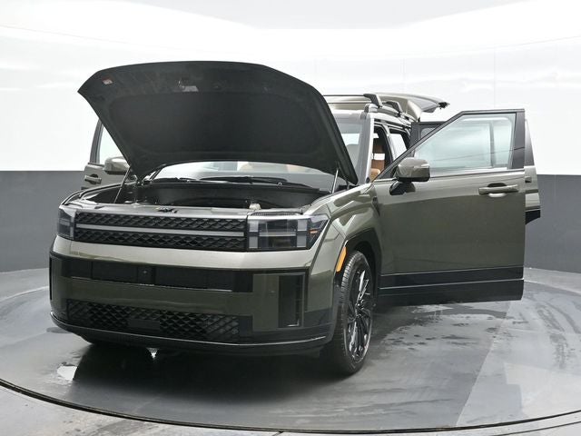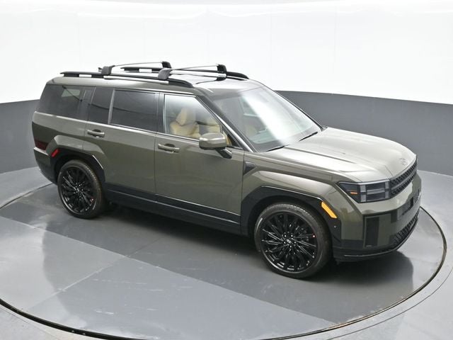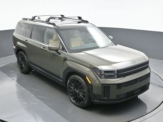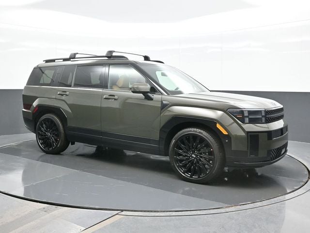 Rockwood Green 2026 Hyundai Santa Fe Calligraphy AWD 8-Speed Automatic with SHIFTRONIC 2.5L I4 AWD, Pecan Brown Leather. AWD, Pecan Brown Leather, 12 Speakers, 3rd row seats: bench, 4-Wheel Disc Brakes, ABS brakes, Air Conditioning, Alloy wheels, AM/FM radio: SiriusXM, Apple CarPlay & Android Auto, Auto High-beam Headlights, Auto-dimming Rear-View mirror, Automatic temperature control, Brake assist, Bumpers: body-color, Cargo Net, Delay-off headlights, Driver door bin, Driver vanity mirror, Dual front impact airbags, Dual front side impact airbags, Electronic Stability Control, Emergency communication system, Exterior Parking Camera Rear, Four wheel independent suspension, Front anti-roll bar, Front Bucket Seats, Front Center Armrest, Front dual zone A/C, Front reading lights, Fully automatic headlights, Garage door transmitter: HomeLink, Heads-Up Display, Heated and Ventilated Front Bucket Seats, Heated door mirrors, Heated front seats, Heated rear seats, Heated steering wheel, Illuminated entry, Knee airbag, Leather steering wheel, Low tire pressure warning, Memory seat, Navigation System, Occupant sensing airbag, Outside temperature display, Overhead airbag, Overhead console, Panic alarm, Passenger door bin, Passenger vanity mirror, Power door mirrors, Power driver seat, Power Liftgate, Power moonroof, Power passenger seat, Power steering, Power windows, Quilted Premium Nappa Leather Seat Trim, Radio: AM/FM/HD Bose Premium Audio System, Rain sensing wipers, Rear anti-roll bar, Rear side impact airbag, Rear window defroster, Rear window wiper, Remote keyless entry, Roof Rack Crossbars, Security system, Speed control, Speed-sensing steering, Split folding rear seat, Spoiler, Steering wheel mounted audio controls, Tachometer, Telescoping steering wheel, Tilt steering wheel, Traction control, Trip computer, Turn signal indicator mirrors, Variably intermittent wipers, Ventilated front seats, and Wheels: 21 x 8.5J Unique Dark Finish Alloy.