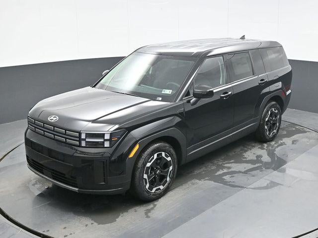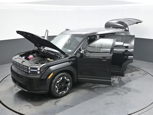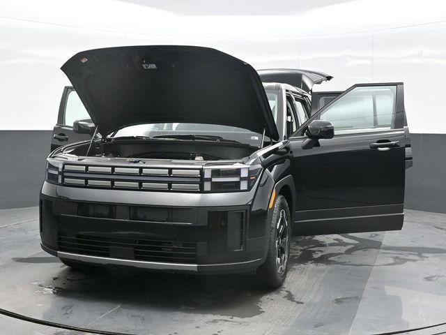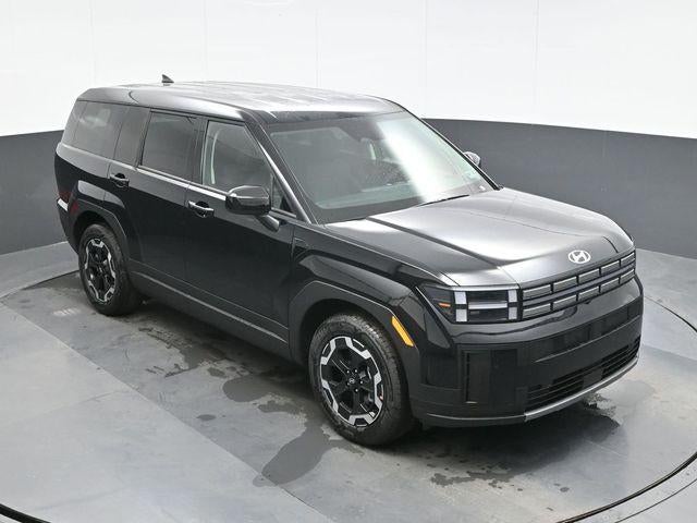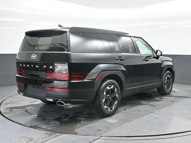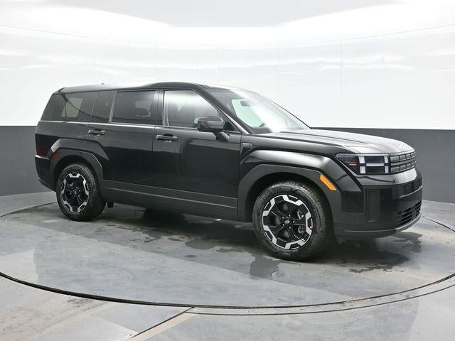 Phantom Black 2026 Hyundai Santa Fe SE AWD 8-Speed Automatic with SHIFTRONIC 2.5L I4 AWD, Black Cloth. Option Group 01, AWD, Black Cloth, 18 x 7.5J Alloy Wheels, 3rd row seats: bench, 4-Wheel Disc Brakes, 6 Speakers, ABS brakes, Air Conditioning, Alloy wheels, AM/FM radio: SiriusXM, Apple CarPlay & Android Auto, Auto High-beam Headlights, Brake assist, Bumpers: body-color, Carpeted Floor Mats, Delay-off headlights, Driver door bin, Driver vanity mirror, Dual front impact airbags, Dual front side impact airbags, Electronic Stability Control, Emergency communication system, Exterior Parking Camera Rear, Four wheel independent suspension, Front anti-roll bar, Front Bucket Seats, Front Center Armrest, Front reading lights, Fully automatic headlights, Heated door mirrors, Illuminated entry, Knee airbag, Leather steering wheel, Low tire pressure warning, Occupant sensing airbag, Outside temperature display, Overhead airbag, Overhead console, Panic alarm, Passenger door bin, Passenger vanity mirror, Power door mirrors, Power Liftgate, Power steering, Power windows, Radio: AM/FM/HD Display Audio, Rear anti-roll bar, Rear seat center armrest, Rear side impact airbag, Rear window defroster, Rear window wiper, Remote keyless entry, Security system, Speed control, Speed-sensing steering, Split folding rear seat, Spoiler, Steering wheel mounted audio controls, Tachometer, Telescoping steering wheel, Tilt steering wheel, Traction control, Trip computer, Variably intermittent wipers, and YES Essentials Stain-Resistant Cloth Seat Trim.