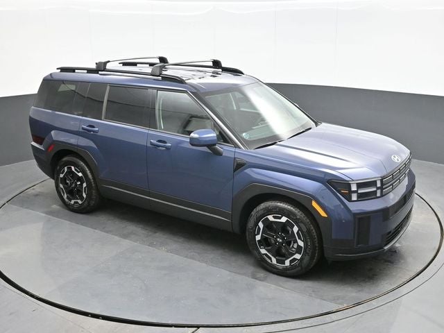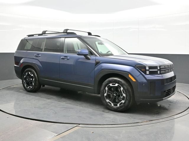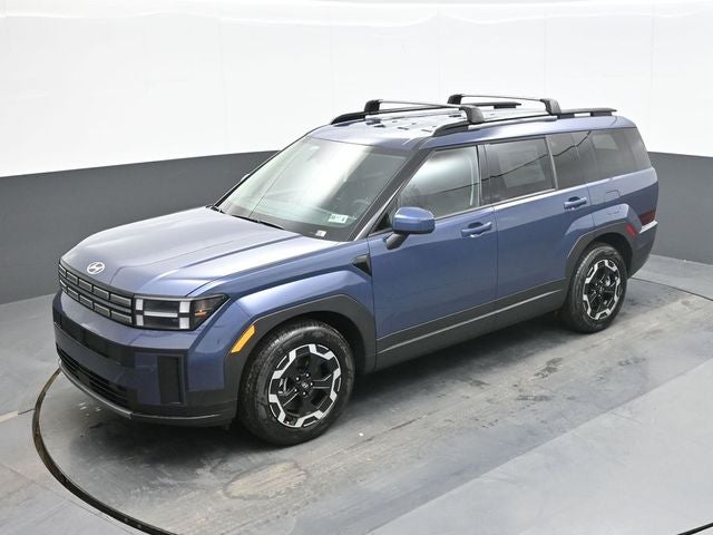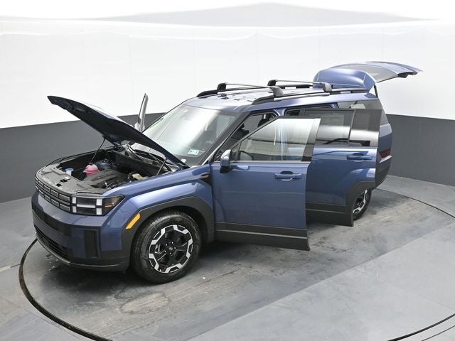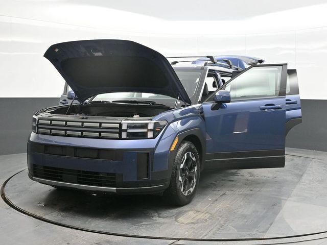 Atlantis Blue 2026 Hyundai Santa Fe SEL AWD 8-Speed Automatic with SHIFTRONIC 2.5L I4 AWD, Black Artificial Leather. AWD, Black Artificial Leather, 18 x 7.5J Alloy Wheels, 3rd row seats: bench, 4-Wheel Disc Brakes, 6 Speakers, ABS brakes, Air Conditioning, Alloy wheels, AM/FM radio: SiriusXM, Apple CarPlay & Android Auto, Auto High-beam Headlights, Automatic temperature control, Brake assist, Bumpers: body-color, Cargo Net, Delay-off headlights, Driver door bin, Driver vanity mirror, Dual front impact airbags, Dual front side impact airbags, Electronic Stability Control, Emergency communication system, Exterior Parking Camera Rear, Four wheel independent suspension, Front anti-roll bar, Front Bucket Seats, Front Center Armrest, Front dual zone A/C, Front reading lights, Fully automatic headlights, H-Tex Leatherette Seat Trim, Heated door mirrors, Heated Front Bucket Seats, Heated front seats, Illuminated entry, Knee airbag, Leather steering wheel, Low tire pressure warning, Occupant sensing airbag, Outside temperature display, Overhead airbag, Overhead console, Panic alarm, Passenger door bin, Passenger vanity mirror, Power door mirrors, Power driver seat, Power Liftgate, Power steering, Power windows, Radio: AM/FM/HD Display Audio, Rear anti-roll bar, Rear seat center armrest, Rear side impact airbag, Rear window defroster, Rear window wiper, Remote keyless entry, Roof Rack Crossbars, Security system, Speed control, Speed-sensing steering, Split folding rear seat, Spoiler, Steering wheel mounted audio controls, Tachometer, Telescoping steering wheel, Tilt steering wheel, Traction control, Trip computer, Turn signal indicator mirrors, and Variably intermittent wipers.