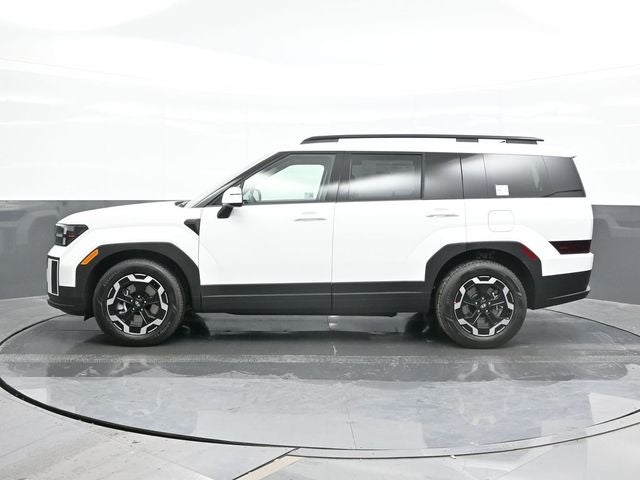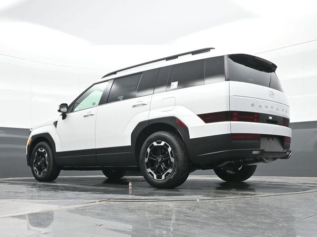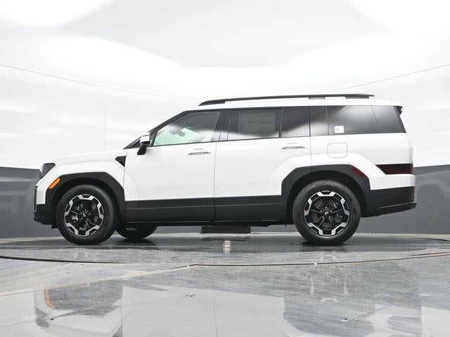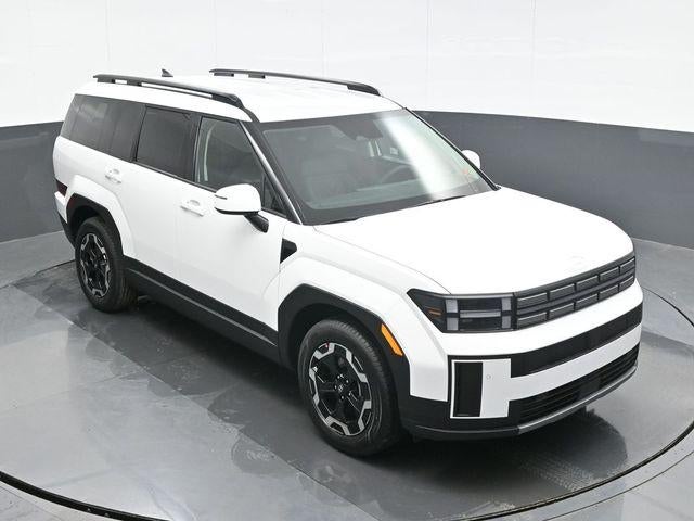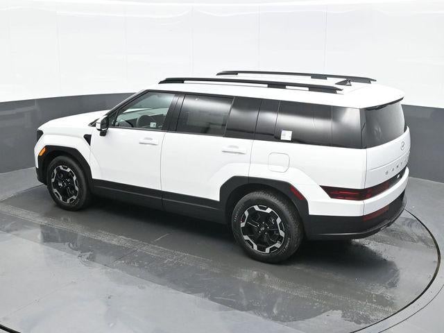 Serenity White 2026 Hyundai Santa Fe SEL AWD 8-Speed Automatic with SHIFTRONIC 2.5L I4 AWD, Black Premium Synthetic. AWD, Black Premium Synthetic, 18 x 7.5J Alloy Wheels, 3rd row seats: bench, 4-Wheel Disc Brakes, 6 Speakers, ABS brakes, Air Conditioning, Alloy wheels, AM/FM radio: SiriusXM, Apple CarPlay & Android Auto, Auto High-beam Headlights, Automatic temperature control, Brake assist, Bumpers: body-color, Cargo Blocks, Cargo Net, Cargo Organizer, Delay-off headlights, Driver door bin, Driver vanity mirror, Dual front impact airbags, Dual front side impact airbags, Electronic Stability Control, Emergency communication system, Exterior Parking Camera Rear, Four wheel independent suspension, Front anti-roll bar, Front Bucket Seats, Front Center Armrest, Front dual zone A/C, Front reading lights, Fully automatic headlights, H-Tex Leatherette Seat Trim, Heated door mirrors, Heated Front Bucket Seats, Heated front seats, Illuminated entry, Knee airbag, Leather steering wheel, Low tire pressure warning, Occupant sensing airbag, Outside temperature display, Overhead airbag, Overhead console, Panic alarm, Passenger door bin, Passenger vanity mirror, Power door mirrors, Power driver seat, Power Liftgate, Power steering, Power windows, Radio: AM/FM/HD Display Audio, Rear anti-roll bar, Rear seat center armrest, Rear side impact airbag, Rear window defroster, Rear window wiper, Remote keyless entry, Security system, Speed control, Speed-sensing steering, Split folding rear seat, Spoiler, Steering wheel mounted audio controls, Tachometer, Telescoping steering wheel, Tilt steering wheel, Traction control, Trip computer, Turn signal indicator mirrors, and Variably intermittent wipers.