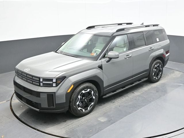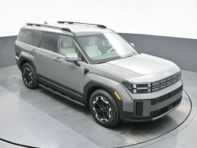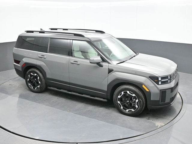 Hampton Gray 2026 Hyundai Santa Fe SEL AWD 8-Speed Automatic with SHIFTRONIC 2.5L I4 AWD, Gray Premium Synthetic. AWD, Gray Premium Synthetic, 18 x 7.5J Alloy Wheels, 3rd row seats: bench, 4-Wheel Disc Brakes, 6 Speakers, ABS brakes, Air Conditioning, Alloy wheels, AM/FM radio: SiriusXM, Apple CarPlay & Android Auto, Auto High-beam Headlights, Automatic temperature control, Brake assist, Bumpers: body-color, Cargo Net, Delay-off headlights, Driver door bin, Driver vanity mirror, Dual front impact airbags, Dual front side impact airbags, Electronic Stability Control, Emergency communication system, Exterior Parking Camera Rear, Four wheel independent suspension, Front anti-roll bar, Front Bucket Seats, Front Center Armrest, Front dual zone A/C, Front reading lights, Fully automatic headlights, H-Tex Leatherette Seat Trim, Heated door mirrors, Heated Front Bucket Seats, Heated front seats, Illuminated entry, Knee airbag, Leather steering wheel, Low tire pressure warning, Occupant sensing airbag, Outside temperature display, Overhead airbag, Overhead console, Panic alarm, Passenger door bin, Passenger vanity mirror, Power door mirrors, Power driver seat, Power Liftgate, Power steering, Power windows, Radio: AM/FM/HD Display Audio, Rear anti-roll bar, Rear seat center armrest, Rear side impact airbag, Rear window defroster, Rear window wiper, Remote keyless entry, Security system, Speed control, Speed-sensing steering, Split folding rear seat, Spoiler, Steering wheel mounted audio controls, Tachometer, Telescoping steering wheel, Tilt steering wheel, Traction control, Trip computer, Turn signal indicator mirrors, and Variably intermittent wipers.