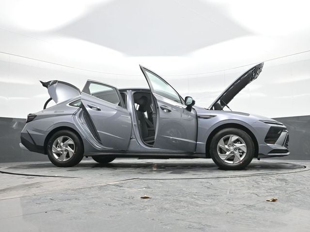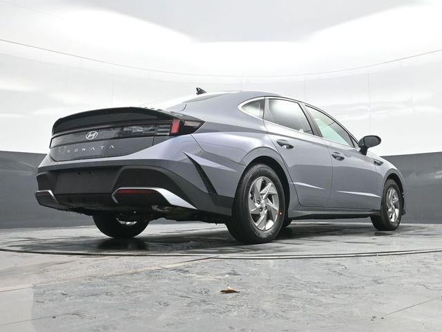 Transmission Blue 2026 Hyundai Sonata SE FWD 8-Speed Automatic I4 Black Cloth. Black Cloth, 16 x 6.5J Aluminum Alloy Wheels, 4-Wheel Disc Brakes, 6 Speakers, ABS brakes, Air Conditioning, Alloy wheels, AM/FM radio: SiriusXM, Apple CarPlay & Android Auto, Auto High-beam Headlights, Brake assist, Bumpers: body-color, Cargo Block, Cargo Organizer, Cargo Tray, Delay-off headlights, Driver door bin, Driver vanity mirror, Dual front impact airbags, Dual front side impact airbags, Electronic Stability Control, Exterior Parking Camera Rear, Four wheel independent suspension, Front anti-roll bar, Front Bucket Seats, Front Center Armrest, Front reading lights, Fully automatic headlights, Illuminated entry, Knee airbag, Low tire pressure warning, Occupant sensing airbag, Outside temperature display, Overhead airbag, Overhead console, Panic alarm, Passenger door bin, Passenger vanity mirror, Power door mirrors, Power steering, Power windows, Premium Cloth Seating Surfaces, Radio data system, Radio: AM/FM/HD/MP3/SiriusXM, Rear anti-roll bar, Rear side impact airbag, Rear window defroster, Remote keyless entry, Security system, Speed control, Speed-sensing steering, Speed-Sensitive Wipers, Split folding rear seat, Steering wheel mounted audio controls, Tachometer, Telescoping steering wheel, Tilt steering wheel, Traction control, Trip computer, and Variably intermittent wipers.