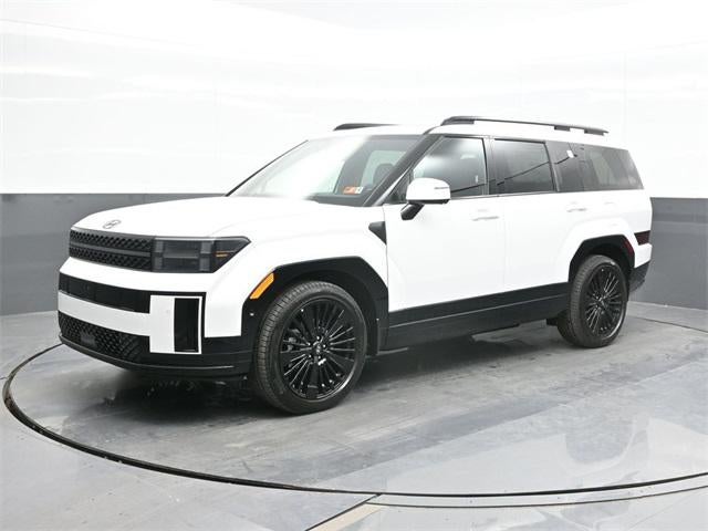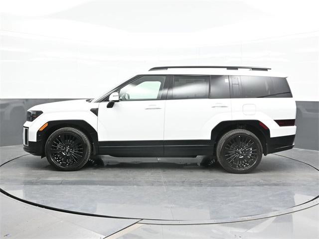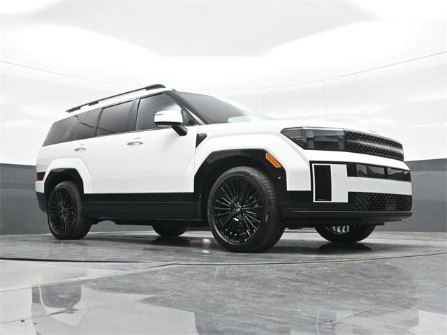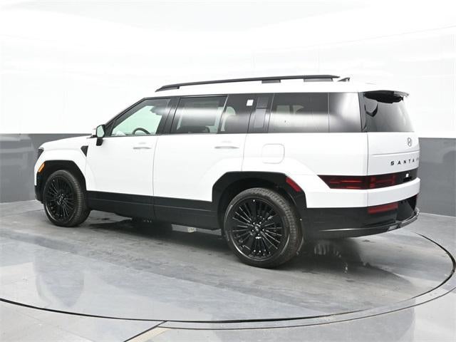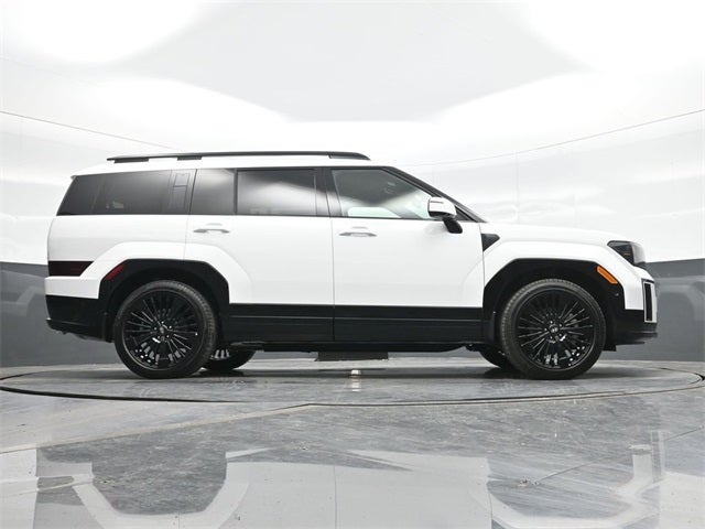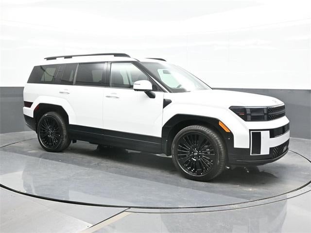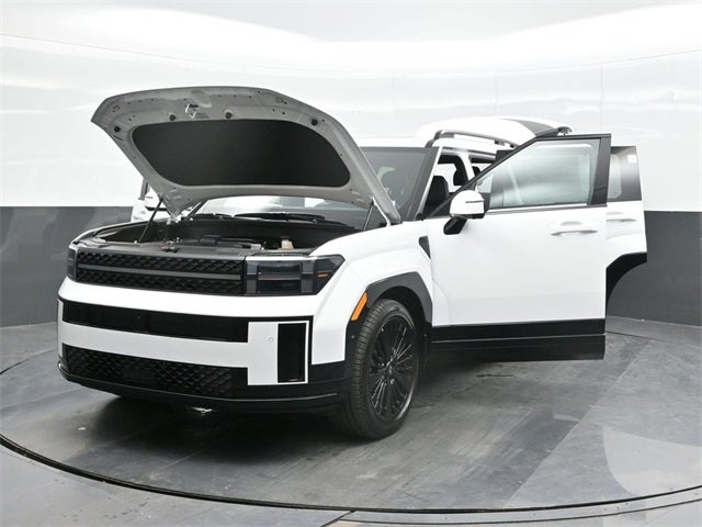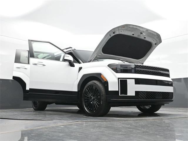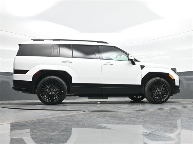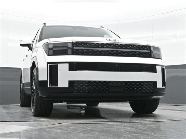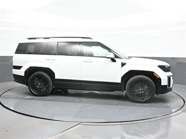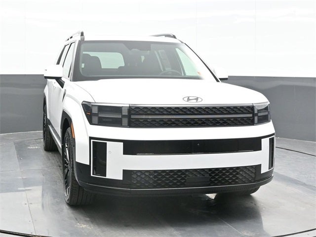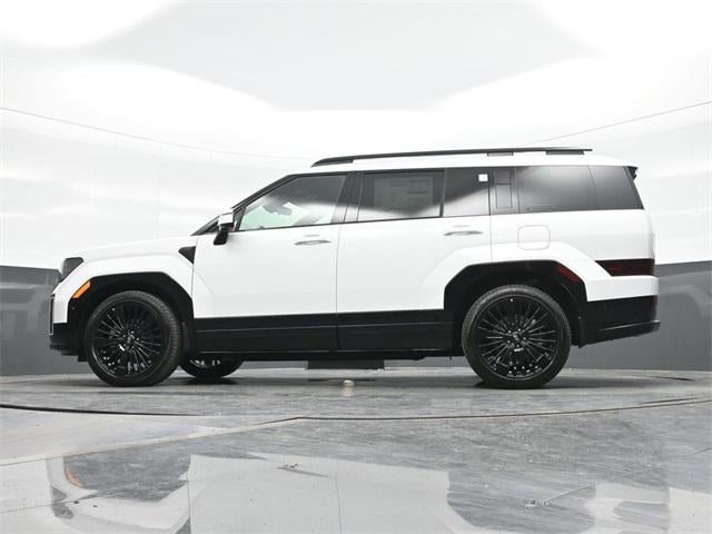 Serenity White 2026 Hyundai Santa Fe Hybrid Calligraphy AWD 6-Speed Automatic with Shiftronic I4 I4. Option Group 01, I4, 12 Speakers, 3rd row seats: bench, 4-Wheel Disc Brakes, ABS brakes, Air Conditioning, Alloy wheels, AM/FM radio: SiriusXM, Apple CarPlay & Android Auto, Auto High-beam Headlights, Auto-dimming Rear-View mirror, Automatic temperature control, Brake assist, Bumpers: body-color, Cargo Blocks, Cargo Cover/Screen, Cargo Net, Cargo Tray, Carpeted Floor Mats, Delay-off headlights, Driver door bin, Driver vanity mirror, Dual front impact airbags, Dual front side impact airbags, Electronic Stability Control, Emergency communication system, Exterior Parking Camera Rear, First Aid Kit, Four wheel independent suspension, Front anti-roll bar, Front Bucket Seats, Front Center Armrest, Front dual zone A/C, Front reading lights, Fully automatic headlights, Garage door transmitter: HomeLink, Heads-Up Display, Heated door mirrors, Heated front seats, Heated rear seats, Heated steering wheel, Illuminated entry, Knee airbag, Leather steering wheel, Low tire pressure warning, Memory seat, Mudguards, Navigation System, Occupant sensing airbag, Outside temperature display, Overhead airbag, Overhead console, Panic alarm, Passenger door bin, Passenger vanity mirror, Power door mirrors, Power driver seat, Power Liftgate, Power moonroof, Power passenger seat, Power steering, Power windows, Quilted Premium Nappa Leather Seat Trim, Radio: AM/FM/HD Bose Premium Audio System, Rain sensing wipers, Rear anti-roll bar, Rear side impact airbag, Rear window defroster, Rear window wiper, Remote keyless entry, Security system, Speed control, Speed-sensing steering, Split folding rear seat, Spoiler, Steering wheel mounted audio controls, Tachometer, Telescoping steering wheel, Tilt steering wheel, Traction control, Trip computer, Turn signal indicator mirrors, Variably intermittent wipers, Ventilated front seats, and Wheels: 20 x 8.5J Unique Dark Finish Alloy.