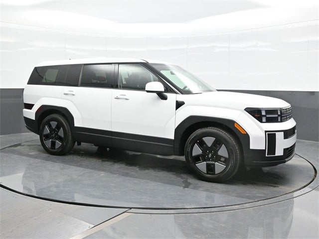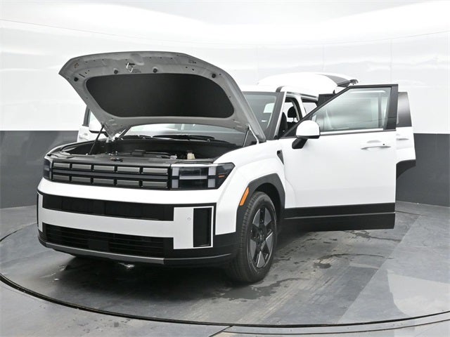 Serenity White 2026 Hyundai Santa Fe Hybrid SE AWD 6-Speed Automatic with Shiftronic I4 I4, 18 x 7.5J Alloy Wheels, ABS brakes, Active Cruise Control, Alloy wheels, Electronic Stability Control, Emergency communication system, Front dual zone A/C, Heated door mirrors, Illuminated entry, Low tire pressure warning, Power Liftgate, Remote keyless entry, Traction control. I4, 18 x 7.5J Alloy Wheels, ABS brakes, Active Cruise Control, Alloy wheels, Electronic Stability Control, Emergency communication system, Front dual zone A/C, Heated door mirrors, Illuminated entry, Low tire pressure warning, Power Liftgate, Remote keyless entry, Traction control, 3rd row seats: bench, 4-Wheel Disc Brakes, 6 Speakers, Air Conditioning, AM/FM radio: SiriusXM, Apple CarPlay & Android Auto, Auto High-beam Headlights, Automatic temperature control, Brake assist, Bumpers: body-color, Delay-off headlights, Driver door bin, Driver vanity mirror, Dual front impact airbags, Dual front side impact airbags, Exterior Parking Camera Rear, Four wheel independent suspension, Front anti-roll bar, Front Bucket Seats, Front Center Armrest, Front reading lights, Fully automatic headlights, Knee airbag, Leather steering wheel, Occupant sensing airbag, Outside temperature display, Overhead airbag, Overhead console, Panic alarm, Passenger door bin, Passenger vanity mirror, Power door mirrors, Power steering, Power windows, Radio: AM/FM/HD Display Audio, Rear anti-roll bar, Rear seat center armrest, Rear side impact airbag, Rear window defroster, Rear window wiper, Security system, Speed control, Speed-sensing steering, Split folding rear seat, Spoiler, Steering wheel mounted audio controls, Tachometer, Telescoping steering wheel, Tilt steering wheel, Trip computer, Variably intermittent wipers, and YES Essentials Stain-Resistant Cloth Seat Trim.