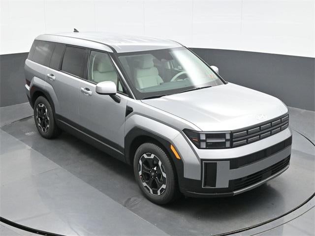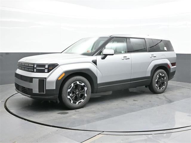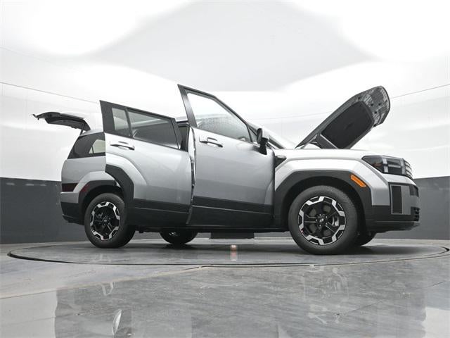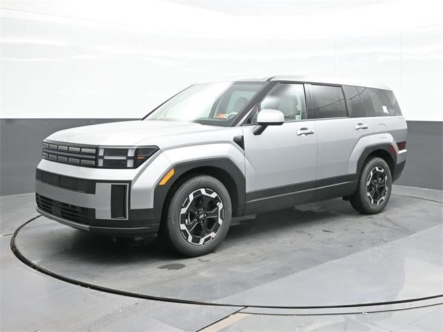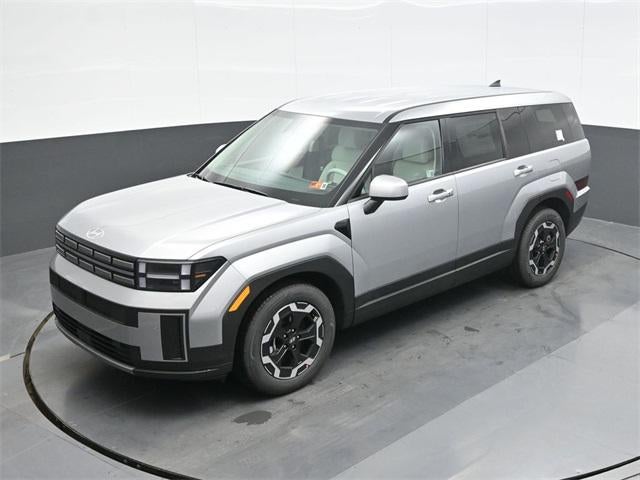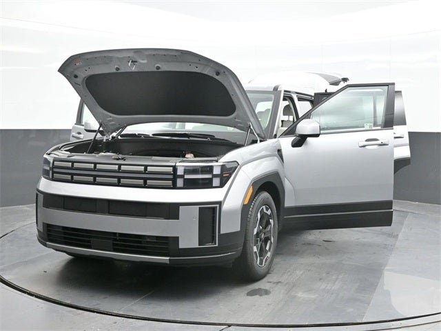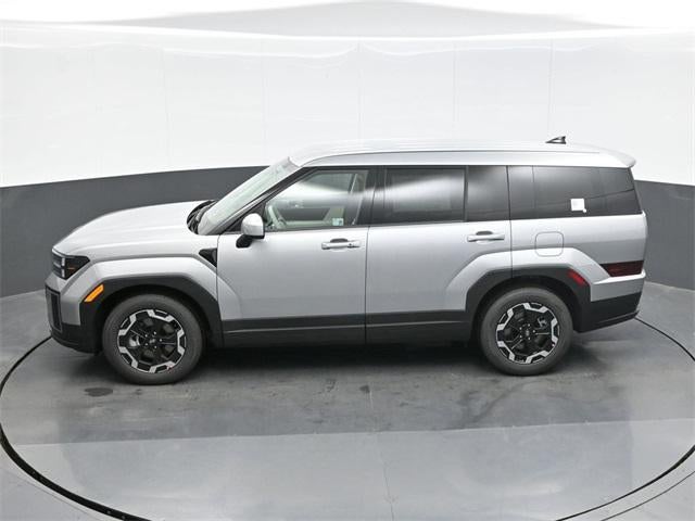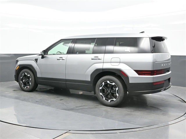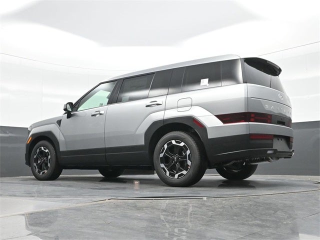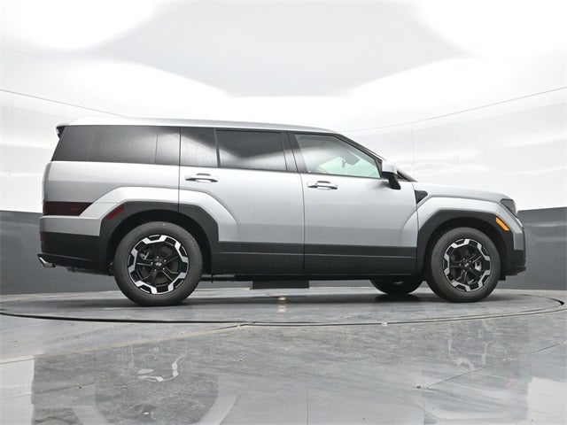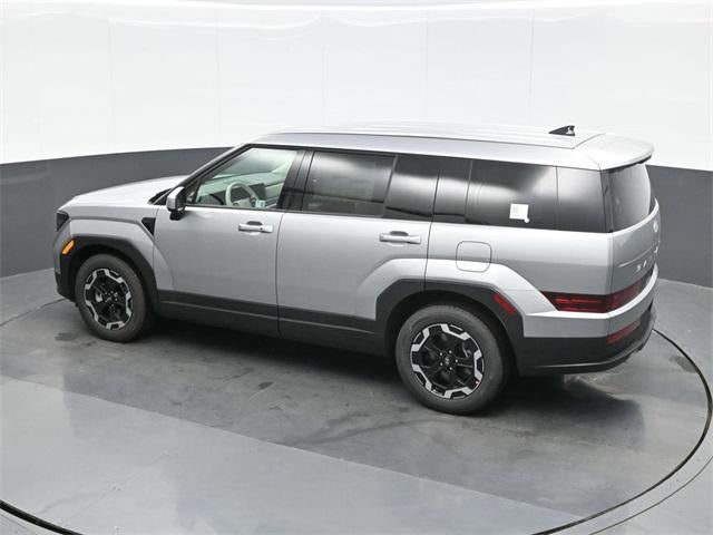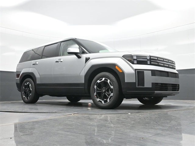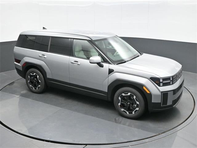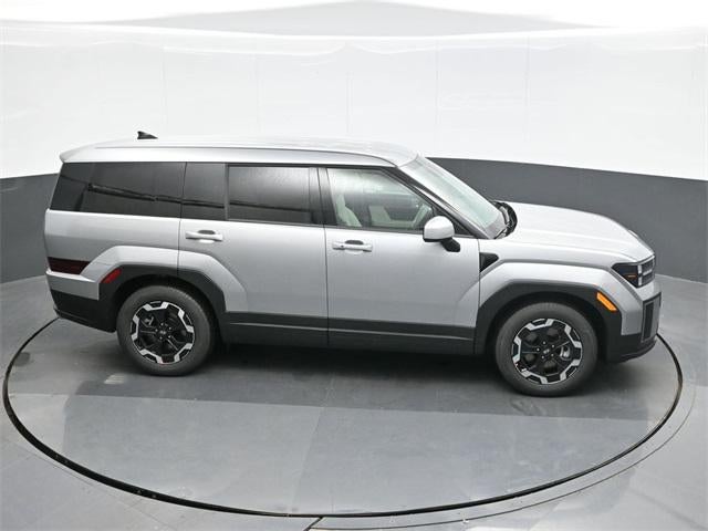 Shimmering Silver Pearl 2026 Hyundai Santa Fe SE AWD 8-Speed Automatic with SHIFTRONIC 2.5L I4 AWD, Gray Cloth. Option Group 01, AWD, Gray Cloth, 18 x 7.5J Alloy Wheels, 3rd row seats: bench, 4-Wheel Disc Brakes, 6 Speakers, ABS brakes, Air Conditioning, All Season Fitted Liners, Alloy wheels, AM/FM radio: SiriusXM, Apple CarPlay & Android Auto, Auto High-beam Headlights, Brake assist, Bumpers: body-color, Carpeted Floor Mats, Delay-off headlights, Driver door bin, Driver vanity mirror, Dual front impact airbags, Dual front side impact airbags, Electronic Stability Control, Emergency communication system, Exterior Parking Camera Rear, Four wheel independent suspension, Front anti-roll bar, Front Bucket Seats, Front Center Armrest, Front reading lights, Fully automatic headlights, Heated door mirrors, Illuminated entry, Knee airbag, Leather steering wheel, Low tire pressure warning, Occupant sensing airbag, Outside temperature display, Overhead airbag, Overhead console, Panic alarm, Passenger door bin, Passenger vanity mirror, Power door mirrors, Power Liftgate, Power steering, Power windows, Radio: AM/FM/HD Display Audio, Rear anti-roll bar, Rear seat center armrest, Rear side impact airbag, Rear window defroster, Rear window wiper, Remote keyless entry, Roadside Assistance Kit, Security system, Speed control, Speed-sensing steering, Split folding rear seat, Spoiler, Steering wheel mounted audio controls, Tachometer, Telescoping steering wheel, Tilt steering wheel, Traction control, Trip computer, Variably intermittent wipers, and YES Essentials Stain-Resistant Cloth Seat Trim.