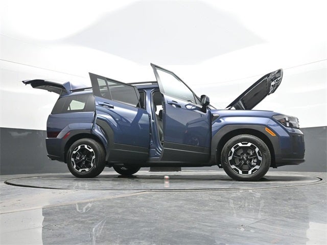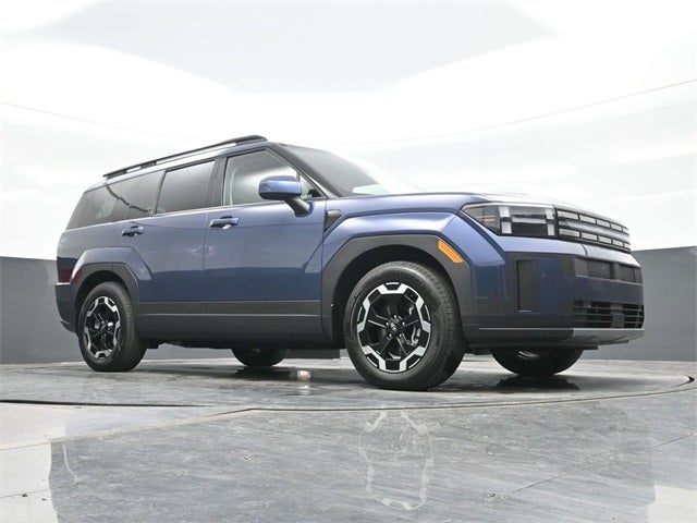Atlantis Blue 2026 Hyundai Santa Fe SEL AWD 8-Speed Automatic with SHIFTRONIC 2.5L I4 AWD, Black Premium Synthetic. Option Group 01, AWD, Black Premium Synthetic, 18 x 7.5J Alloy Wheels, 3rd row seats: bench, 4-Wheel Disc Brakes, 6 Speakers, ABS brakes, Air Conditioning, All Season Fitted Liners, Alloy wheels, AM/FM radio: SiriusXM, Apple CarPlay & Android Auto, Auto High-beam Headlights, Automatic temperature control, Brake assist, Bumpers: body-color, Cargo Blocks, Cargo Cover/Screen, Cargo Net, Cargo Tray, Carpeted Floor Mats, Delay-off headlights, Driver door bin, Driver vanity mirror, Dual front impact airbags, Dual front side impact airbags, Electronic Stability Control, Emergency communication system, Exterior Parking Camera Rear, First Aid Kit, Four wheel independent suspension, Front anti-roll bar, Front Bucket Seats, Front Center Armrest, Front dual zone A/C, Front reading lights, Fully automatic headlights, H-Tex Leatherette Seat Trim, Heated door mirrors, Heated Front Bucket Seats, Heated front seats, Illuminated entry, Knee airbag, Leather steering wheel, Low tire pressure warning, Mudguards, Occupant sensing airbag, Outside temperature display, Overhead airbag, Overhead console, Panic alarm, Passenger door bin, Passenger vanity mirror, Power door mirrors, Power driver seat, Power Liftgate, Power steering, Power windows, Radio: AM/FM/HD Display Audio, Rear anti-roll bar, Rear seat center armrest, Rear side impact airbag, Rear window defroster, Rear window wiper, Remote keyless entry, Roadside Assistance Kit, Security system, Speed control, Speed-sensing steering, Split folding rear seat, Spoiler, Steering wheel mounted audio controls, Tachometer, Telescoping steering wheel, Tilt steering wheel, Traction control, Trip computer, Turn signal indicator mirrors, and Variably intermittent wipers.