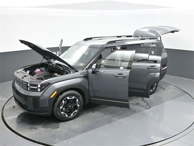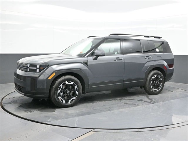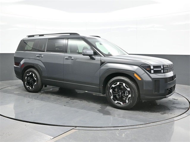 Ecotronic Gray 2026 Hyundai Santa Fe SEL AWD 8-Speed Automatic with SHIFTRONIC 2.5L I4 AWD, Black Premium Synthetic. AWD, Black Premium Synthetic, 18 x 7.5J Alloy Wheels, 3rd row seats: bench, 4-Wheel Disc Brakes, 6 Speakers, ABS brakes, Air Conditioning, Alloy wheels, AM/FM radio: SiriusXM, Apple CarPlay & Android Auto, Auto High-beam Headlights, Automatic temperature control, Brake assist, Bumpers: body-color, Cargo Net, Delay-off headlights, Driver door bin, Driver vanity mirror, Dual front impact airbags, Dual front side impact airbags, Electronic Stability Control, Emergency communication system, Exterior Parking Camera Rear, Four wheel independent suspension, Front anti-roll bar, Front Bucket Seats, Front Center Armrest, Front dual zone A/C, Front reading lights, Fully automatic headlights, H-Tex Leatherette Seat Trim, Heated door mirrors, Heated Front Bucket Seats, Heated front seats, Illuminated entry, Knee airbag, Leather steering wheel, Low tire pressure warning, Mudguards, Occupant sensing airbag, Outside temperature display, Overhead airbag, Overhead console, Panic alarm, Passenger door bin, Passenger vanity mirror, Power door mirrors, Power driver seat, Power Liftgate, Power steering, Power windows, Radio: AM/FM/HD Display Audio, Rear anti-roll bar, Rear seat center armrest, Rear side impact airbag, Rear window defroster, Rear window wiper, Remote keyless entry, Security system, Speed control, Speed-sensing steering, Split folding rear seat, Spoiler, Steering wheel mounted audio controls, Tachometer, Telescoping steering wheel, Tilt steering wheel, Traction control, Trip computer, Turn signal indicator mirrors, and Variably intermittent wipers.