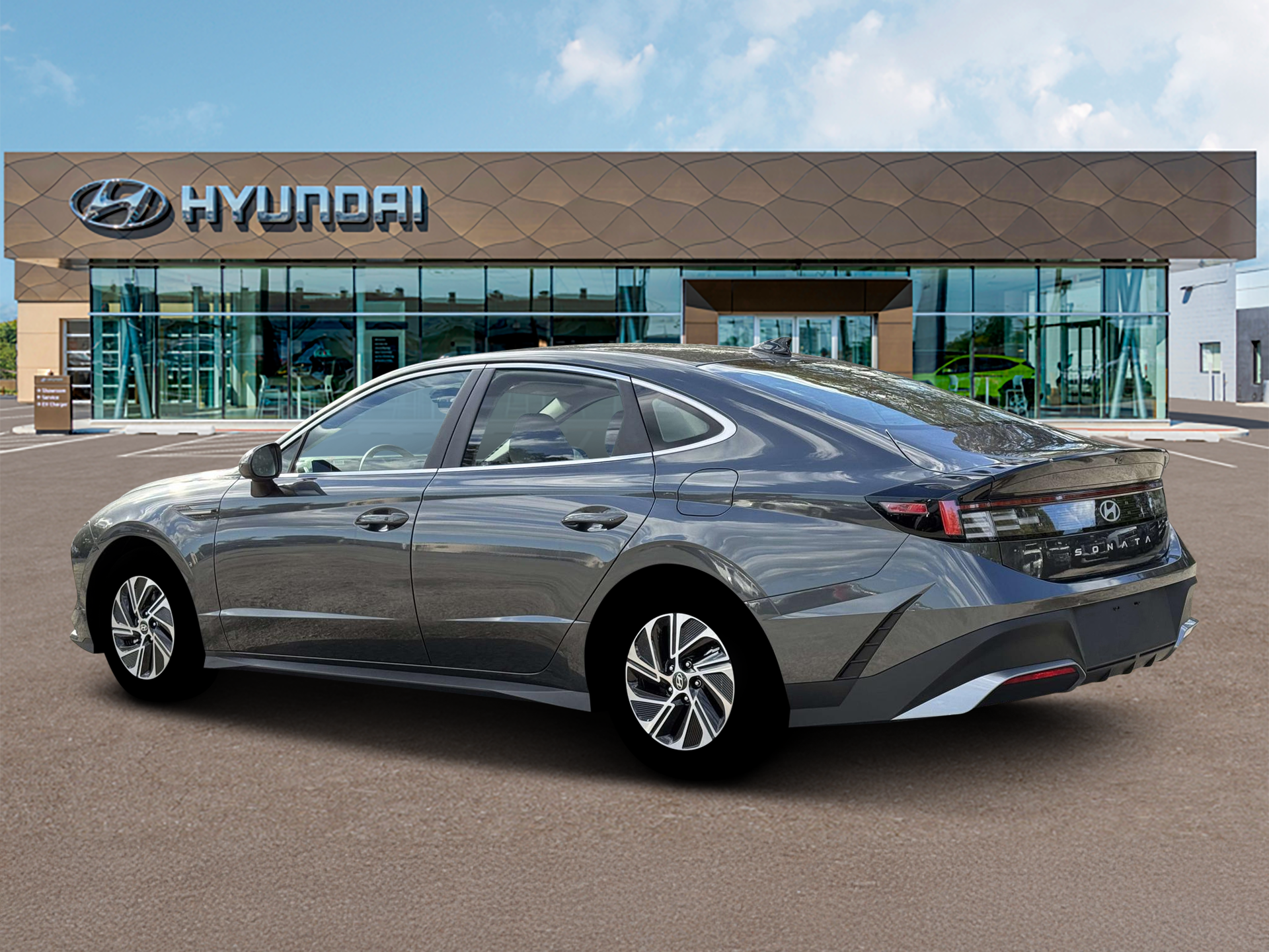 Portofino Gray 2026 Hyundai Sonata Hybrid Blue FWD 6-Speed Automatic with Shiftronic I4 I4. Option Group 01, I4, 16 x 6.5J Aluminum Alloy Wheels, 4-Wheel Disc Brakes, 6 Speakers, ABS brakes, Air Conditioning, Alloy wheels, AM/FM radio: SiriusXM, Apple CarPlay & Android Auto, Auto High-beam Headlights, Automatic temperature control, Brake assist, Bumpers: body-color, Carpeted Floor Mats, Delay-off headlights, Driver door bin, Driver vanity mirror, Dual front impact airbags, Dual front side impact airbags, Electronic Stability Control, Emergency communication system: None, Four wheel independent suspension, Front anti-roll bar, Front Bucket Seats, Front Center Armrest, Front dual zone A/C, Front reading lights, Fully automatic headlights, Illuminated entry, Knee airbag, Lane Departure Warning System, Low tire pressure warning, Occupant sensing airbag, Outside temperature display, Overhead airbag, Overhead console, Panic alarm, Passenger door bin, Passenger vanity mirror, Power door mirrors, Power steering, Power windows, Premium Cloth Seating Surfaces, Radio data system, Radio: AM/FM/HD/MP3/SiriusXM, Rear anti-roll bar, Rear side impact airbag, Rear window defroster, Remote keyless entry, Security system, Speed control, Speed-sensing steering, Speed-Sensitive Wipers, Split folding rear seat, Spoiler, Steering wheel mounted audio controls, Tachometer, Telescoping steering wheel, Tilt steering wheel, Traction control, Trip computer, and Variably intermittent wipers.