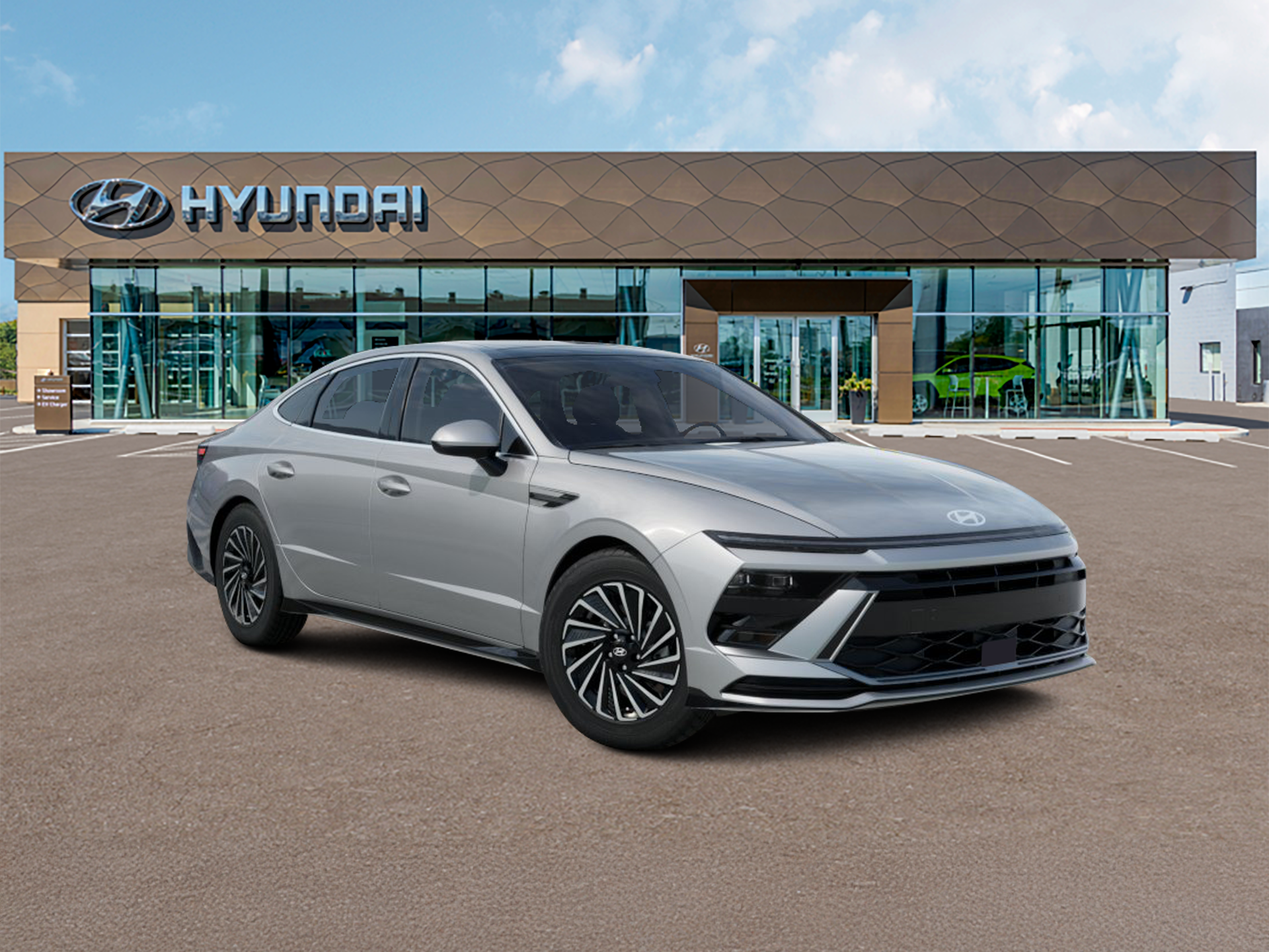 Aero Silver 2026 Hyundai Sonata Hybrid SEL FWD 6-Speed Automatic with Shiftronic I4 I4. Option Group 01, I4, 17 x 7.0J Aluminum Alloy Wheels, 4-Wheel Disc Brakes, 6 Speakers, ABS brakes, Air Conditioning, All-Season Fitted Liners, Alloy wheels, AM/FM radio: SiriusXM, Apple CarPlay & Android Auto, Auto High-beam Headlights, Automatic temperature control, Brake assist, Bumpers: body-color, Cargo Net, Cargo Side Bins, Carpeted Floor Mats, Delay-off headlights, Driver door bin, Driver vanity mirror, Dual front impact airbags, Dual front side impact airbags, Electronic Stability Control, Emergency communication system: None, First Aid Kit, Four wheel independent suspension, Front anti-roll bar, Front Bucket Seats, Front Center Armrest, Front dual zone A/C, Front reading lights, Fully automatic headlights, Heated door mirrors, Heated Front Bucket Seats, Heated front seats, Illuminated entry, Knee airbag, Lane Departure Warning System, Leather steering wheel, Low tire pressure warning, Occupant sensing airbag, Outside temperature display, Overhead airbag, Overhead console, Panic alarm, Passenger door bin, Passenger vanity mirror, Power door mirrors, Power driver seat, Power moonroof, Power steering, Power windows, Premium Cloth Seating Surfaces, Radio data system, Radio: AM/FM/HD/MP3/SiriusXM, Rear anti-roll bar, Rear seat center armrest, Rear side impact airbag, Rear window defroster, Remote keyless entry, Security system, Speed control, Speed-sensing steering, Speed-Sensitive Wipers, Split folding rear seat, Spoiler, Steering wheel mounted audio controls, Tachometer, Telescoping steering wheel, Tilt steering wheel, Traction control, Trip computer, and Variably intermittent wipers.