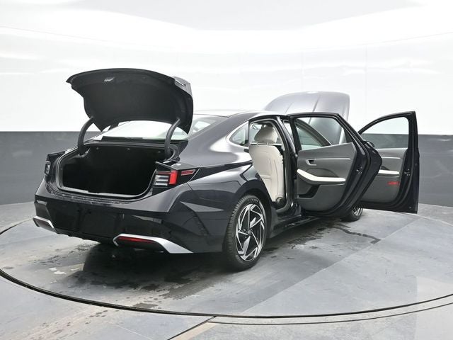 Carbon Blue 2026 Hyundai Sonata SEL Sport FWD 8-Speed Automatic I4 Gray Cloth. Gray Cloth, 18 x 7.5J Aluminum Alloy Wheels, 4-Wheel Disc Brakes, 6 Speakers, ABS brakes, Air Conditioning, Alloy wheels, AM/FM radio: SiriusXM, Apple CarPlay & Android Auto, Auto High-beam Headlights, Automatic temperature control, Brake assist, Bumpers: body-color, Delay-off headlights, Driver door bin, Driver vanity mirror, Dual front impact airbags, Dual front side impact airbags, Electronic Stability Control, Emergency communication system: None, Exterior Parking Camera Rear, Four wheel independent suspension, Front anti-roll bar, Front Bucket Seats, Front Center Armrest, Front dual zone A/C, Front reading lights, Fully automatic headlights, Heated door mirrors, Heated Front Bucket Seats, Heated front seats, Illuminated entry, Knee airbag, Leather steering wheel, Low tire pressure warning, Occupant sensing airbag, Outside temperature display, Overhead airbag, Overhead console, Panic alarm, Passenger door bin, Passenger vanity mirror, Power door mirrors, Power driver seat, Power steering, Power windows, Premium Cloth Seating Surfaces, Radio data system, Radio: AM/FM/HD/MP3/SiriusXM, Rear anti-roll bar, Rear seat center armrest, Rear side impact airbag, Rear window defroster, Remote keyless entry, Security system, Speed control, Speed-sensing steering, Speed-Sensitive Wipers, Split folding rear seat, Steering wheel mounted audio controls, Tachometer, Telescoping steering wheel, Tilt steering wheel, Traction control, Trip computer, and Variably intermittent wipers.