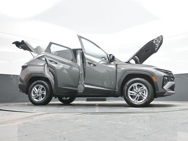 Hampton Gray 2026 Hyundai Tucson SE AWD 8-Speed Automatic with SHIFTRONIC 2.5L I4 DGI DOHC 16V LEV3-SULEV30 187hp AWD. Option Group 01, AWD, 17 x 7.0J Alloy Wheels, 4-Wheel Disc Brakes, 6 Speakers, ABS brakes, Air Conditioning, Alloy wheels, AM/FM radio: SiriusXM, Apple CarPlay & Android Auto, Auto High-beam Headlights, Brake assist, Bumpers: body-color, Cargo Net, Cargo Tray, Carpeted Floor Mats, Delay-off headlights, Driver door bin, Driver vanity mirror, Dual front impact airbags, Dual front side impact airbags, Electronic Stability Control, Emergency communication system: None, First Aid Kit, Four wheel independent suspension, Front and Rear Mudguards, Front anti-roll bar, Front Bucket Seats, Front Center Armrest, Front reading lights, Fully automatic headlights, Illuminated entry, Low tire pressure warning, Occupant sensing airbag, Outside temperature display, Overhead airbag, Overhead console, Panic alarm, Passenger door bin, Passenger vanity mirror, Power door mirrors, Power steering, Power windows, Radio data system, Radio: AM/FM/HD Audio System, Rear anti-roll bar, Rear reading lights, Rear seat center armrest, Rear side impact airbag, Rear window defroster, Rear window wiper, Remote keyless entry, Security system, Speed control, Split folding rear seat, Spoiler, Steering wheel mounted audio controls, Tachometer, Telescoping steering wheel, Tilt steering wheel, Traction control, Trip computer, and Variably intermittent wipers.